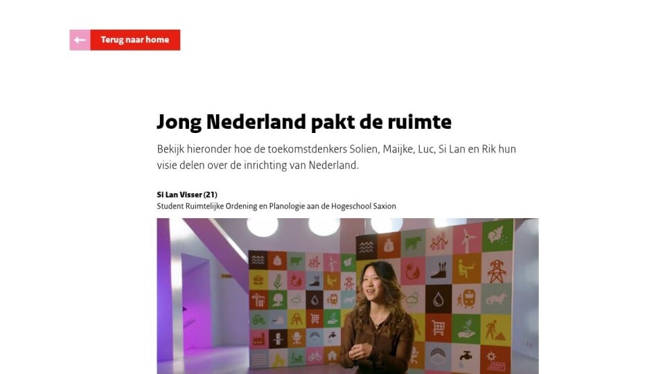Bekijk hieronder hoe de toekomstdenkers Solien, Maijke, Luc, Si Lan en Rik hun visie delen over de inrichting van Nederland.